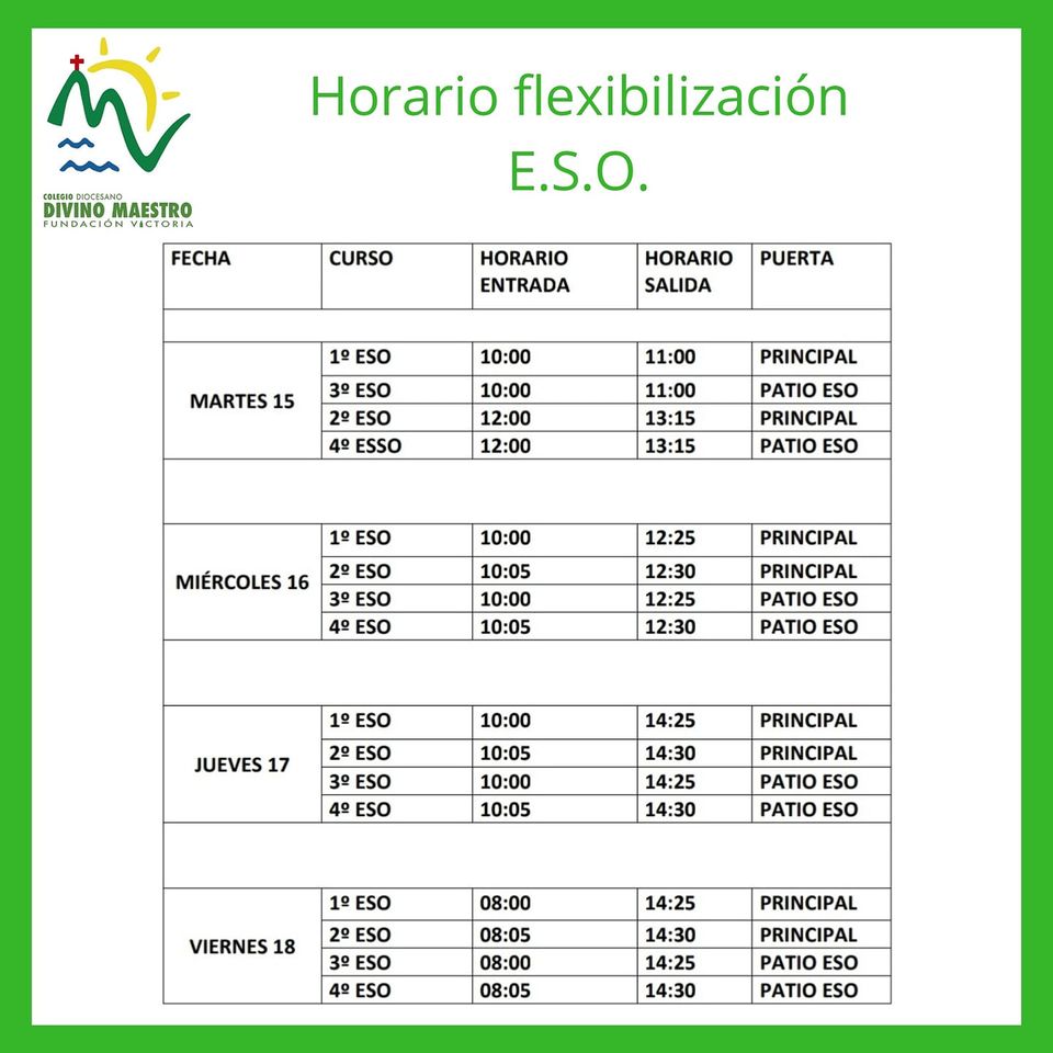 Adjuntamos los horarios de flexibilización para E.Infantil, Primaria y Secundaria de cara al inicio de curso.