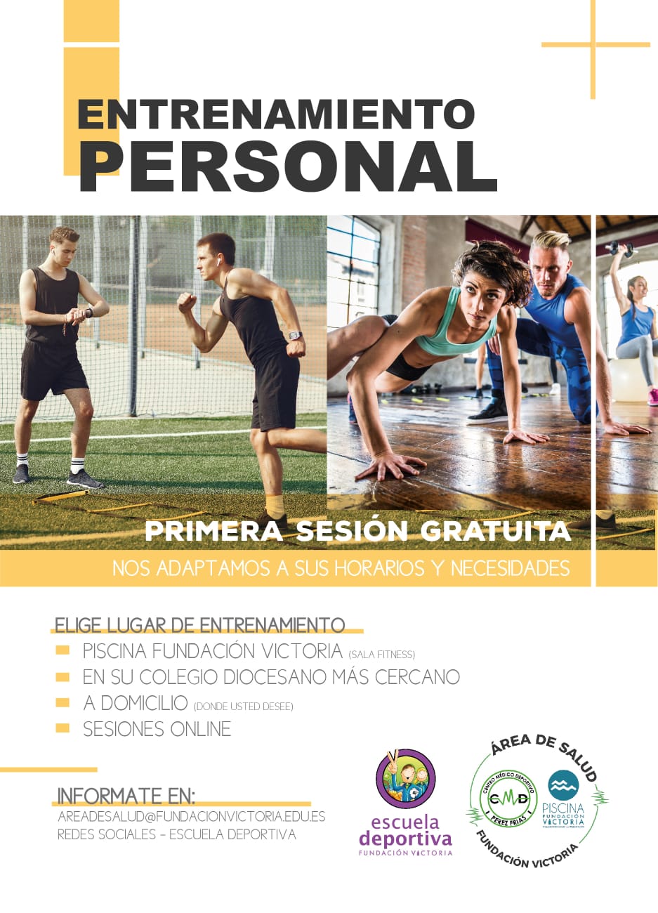 El entrenamiento personal se ofrece tanto en la nueva Instalación Deportiva situada en la Piscina de Fundación Victoria, como en los centros escolares, como en casa de cada usuario o aire libre.